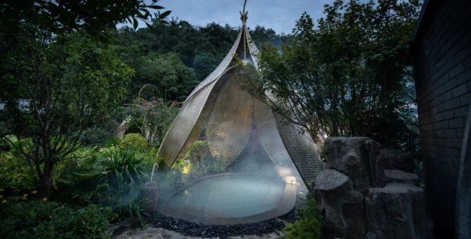82处温泉如温暖脉络串联起全域。芒蚌温泉度假村40多间客房和主题各异的露天泡池能提供不一样的温泉体验,吸引了各地旅居客户,他们一住就是一个月甚至更久,10月份开始入住趋于饱和。梁河南甸伴山云隐康养温泉度假村景区四季皆有客来,过冬避暑各不相同,温泉雾气缭绕,飘着文化的清香。泡完偏硅酸含量较高的温泉,能跟着当地人学做葫芦丝,能在保持了原始风貌和地貌的景区里探寻非遗、抗战历史与进士文化,还能在《遮帕麻和遮咪麻》的彩绘画前听个悠长的故事。盈江云南之蓝的“氟泉”泡池旁能提供游客休憩,抬眼就是草地和江水,设计师把风景留足,周边还有瑞丽江—大盈江国家风景名胜区、大盈江国家湿地公园、中国犀鸟谷、诗蜜娃底、华夏榕树王等数十个旅游资源景点,引入的大盈江水形成了户户滨水而居的田园水系生活和康养度假地。