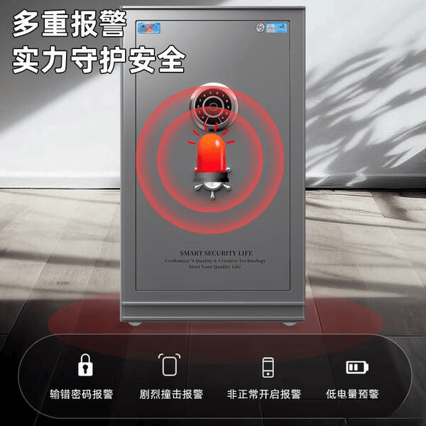 双重报警系统:如果连续三次输错密码或指纹,保险柜会发出报警声,防止小偷打开。同时,重力感应装置还能在箱体受到猛烈撞击时触发报警,提供全方位的保护。