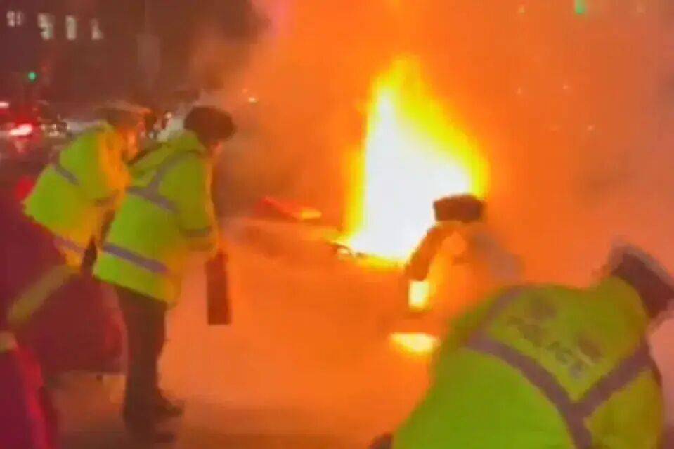 12月下旬,北京市海淀区万寿路街道某路口,外卖小哥骑着一辆电动自行车在行驶中突然起火。