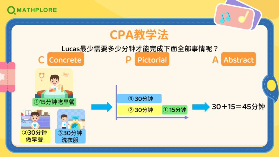 第三步,Abstract(抽象符号理解):等孩子能熟练通过图形分析问题,就可以正式接触抽象的数学符号了。这时候再学“3×4=12”“长方形面积公式”,孩子脑子里已经有了实物操作的触感和图形的画面,符号不再是冰冷的数字组合,而是对现实规律的总结。就像学会骑车后不用再想辅助轮,孩子能自然地把抽象算式和实际问题联系起来。