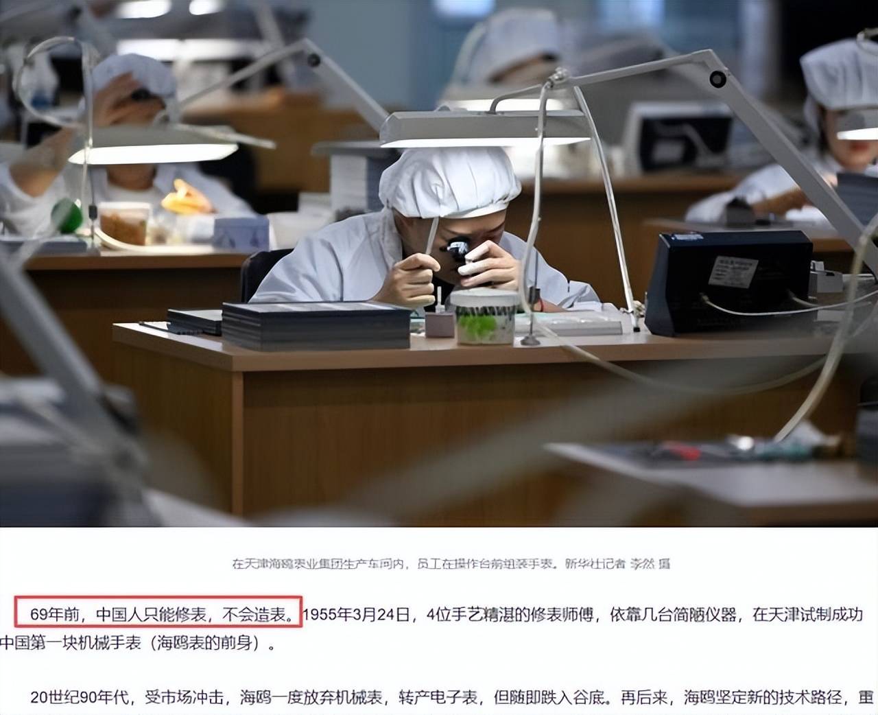 1955年3月24日下午5点45分,天津手表厂四位师傅用简陋设备,参照瑞士十五钻三针粗马手表,试制成功中国第一块机械表,取名五星表。