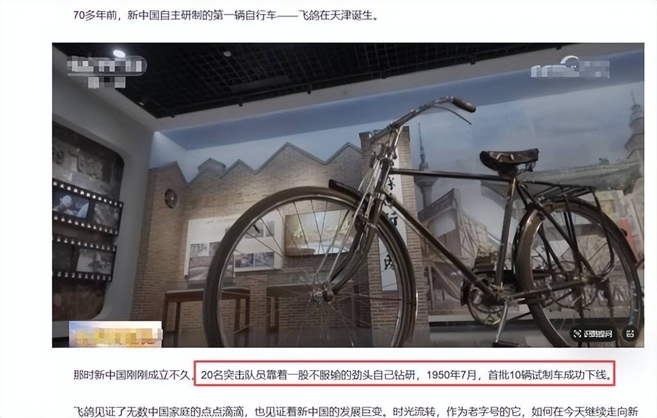 1950年天津自行车厂生产出第一辆完全用国产零部件组装的自行车,当年产量达到11417辆,还支援了推车1350辆。