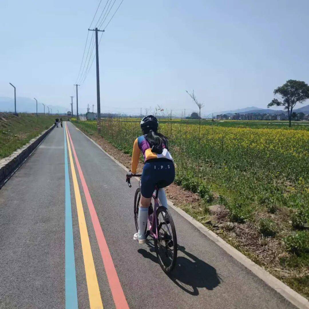 潘婷来自山东,平时在余杭工作。她接触骑行的时间不算长,2023年的夏天,公司的骑行队组织活动,她就由此进入骑行的“坑”。